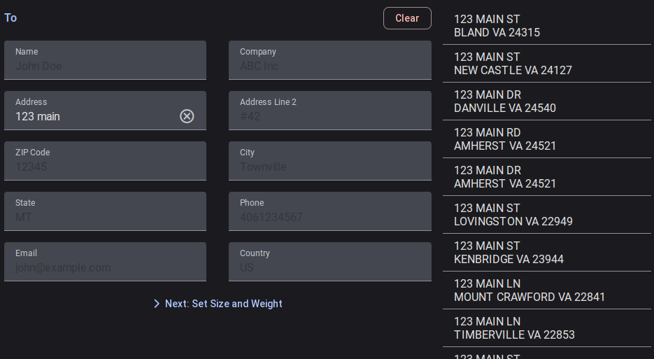 Get street address suggestions as you type, using a free database of over 150 million street addresses. Type a name or phone number to have PostalPoint's cloud service suggest customer accounts too.
