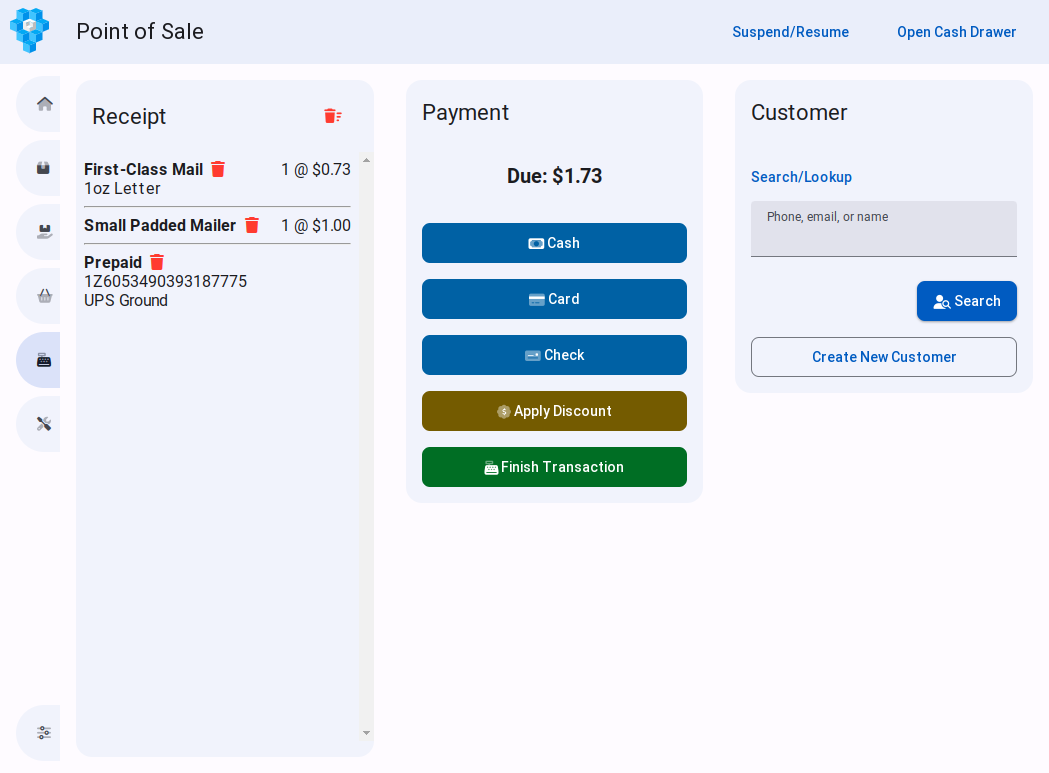 Customer accounts are automatically created and saved in the cloud. PostalPoint also supports syncing data locally among an unlimited number of computers on your store's network.