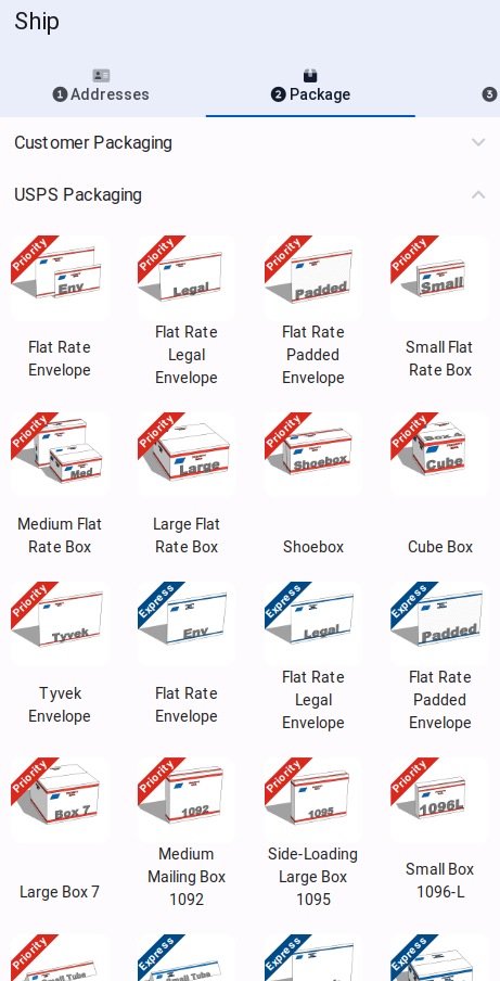 Eliminates errors and confusion by asking the customer to scan the box when using free USPS Priority Mail packaging, automatically enforcing the correct rate.