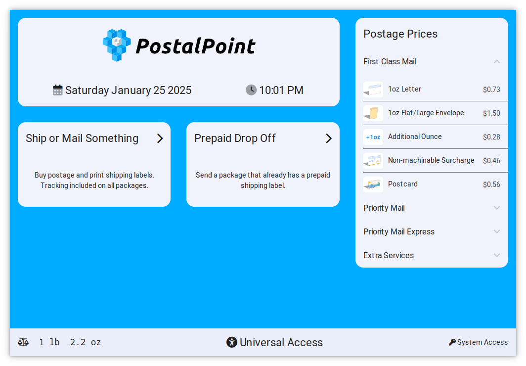 Convert any PostalPoint installation into a friendly self-serve kiosk in seconds.